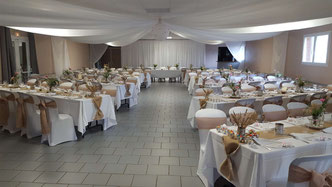 Notre vaste salle des fêtes de 200m² offre une capacité d'accueil pouvant atteindre 150 personnes assises. Elle est équipée d’un mobilier de qualité pour offrir le plus grand confort à vos invités.